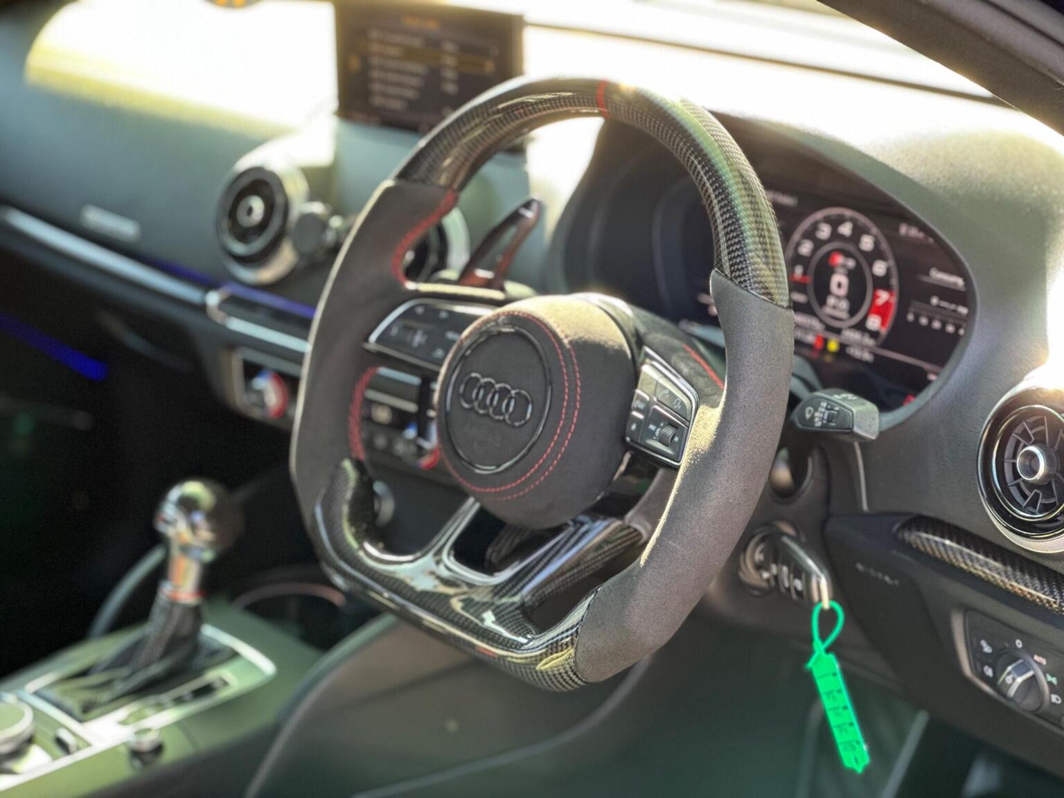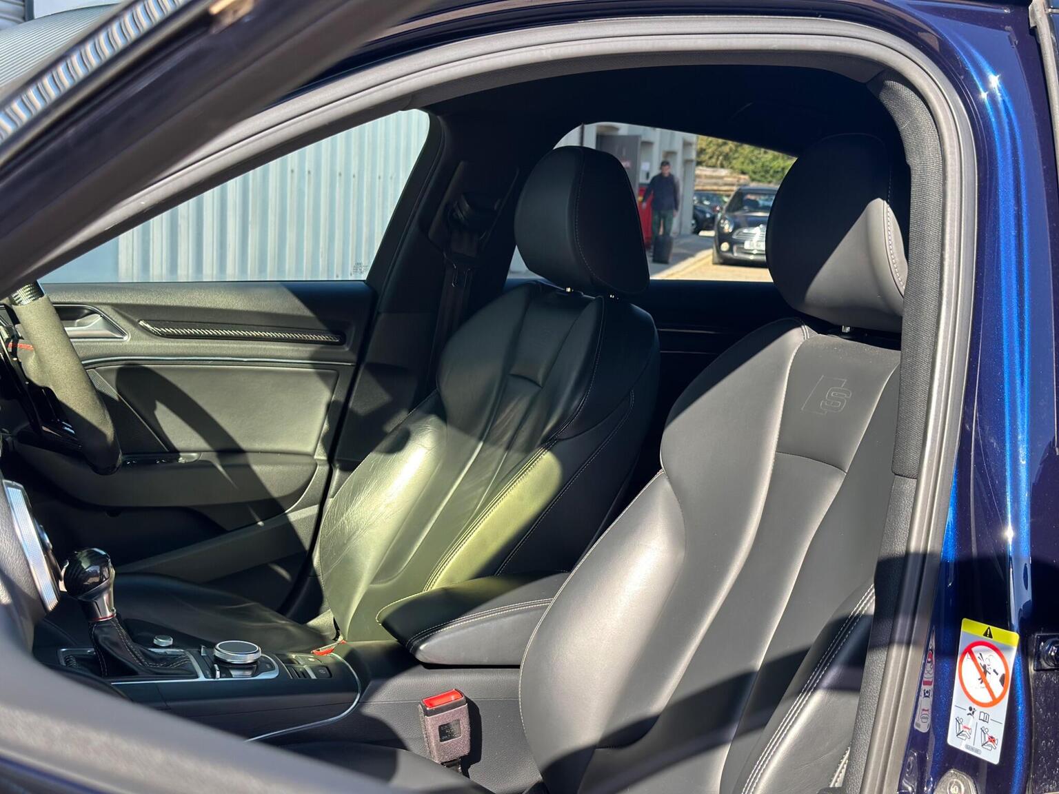 Non-Smoking Package, Online Media Streaming - Audi MMI Connect App Required, Pedals - Brushed Stainless Steel, Privacy Glass, Progressive Steering, Rear Parking Sensors, Remote Central Locking with 2 Fold Away Keys, S Design Body Styling, S Sport Suspension, Seat Belt Monitoring, Space Saver Spare Wheel, Split Folding Rear Seat Bench - 60-40 or Fully, Steering Wheel - 3-Spoke Leather-Multifunction-Flat Bottomed-Shift Paddles, Storage Compartments in the Door Side Trims-Centre Console-Under Drivers Seat, Storage Package, Tool Kit and Car Jack, Tyre Pressure Warning Light, 19in Alloy Wheels - 5-Arm Wing Design in Gloss Titanium Look, 2 x USB Charging Ports and 1 x AUX-IN, 6-Airbag System with Knee Airbag for Driver, Aluminium Interior Elements, Anti Theft Locking Wheel Bolts, Anti-Theft Alarm, Audi Beam, Audi Connect Infotainment Services - 3 Month Trial, Audi Magnetic Ride, Audi Smartphone Interface, Auto-Dimming Rear-View Mirror with Light and Rain Sensor, Bang and Olufsen Sound System, Black Styling Package, Bluetooth Interface, Brake Calipers Painted in Black with S3 Logo at the Front, CD Drive, Cloth Headlining, Colour Drivers Information System - DIS, Cruise Control, DAB Digital Radio, Door Mirrors - Black Housing, Door Mirrors - Electrically Adjustable and Heated with Integrated LED Side Indicators, Dual-Zone Electronic Climate Control, ESC - Electronic Stabilisation Control inc ABS - ASR and EDL, Electric Windows - Front, Electromechanical Parking Brake, Email and Text Messages can be Displayed on your Vehicles MMI, Exhaust Tailpipe - Dual-Branch Oval Twin with Chrome Finish, First Aid Kit and Warning Triangle, Front Centre Armrest, Front and Rear Floor Mats, Headlights Washers, Heated Front Seats, Heated Windscreen Washer Jets, Hill Hold Assist, ISOFIX Child Seat Mounting and Top Tether, Illuminated Door Sill Trims with S Logo, Inlays - Matt Brushed Aluminium, Instrument Dials with S3 Logo, LED Headlights with LED Rear Lights and Dynamic Rear Indicators, LED Interior Light Package, Lashing Points in Luggage Compartment, MMI Navigation - SD Card Based, MMI Radio Plus with 7in Electrically Retractable Colour MMI Screen, Model and Engine Technology Badges at Rear
