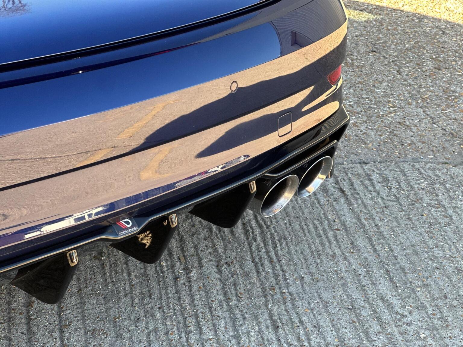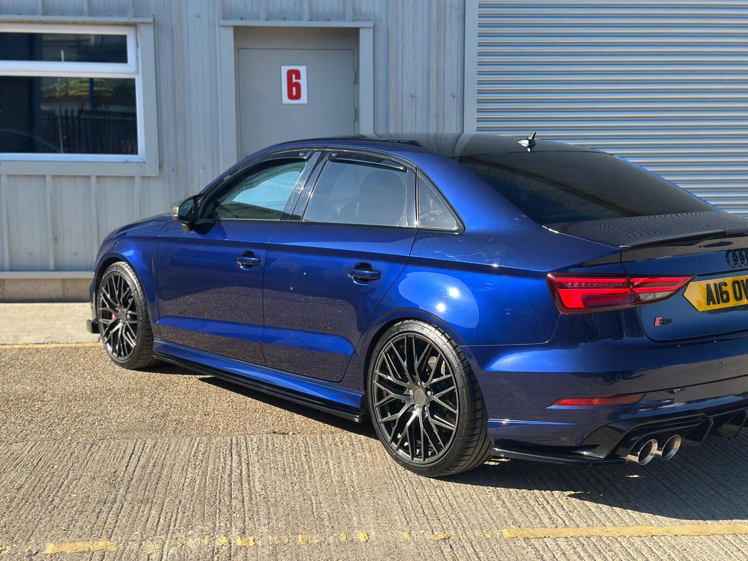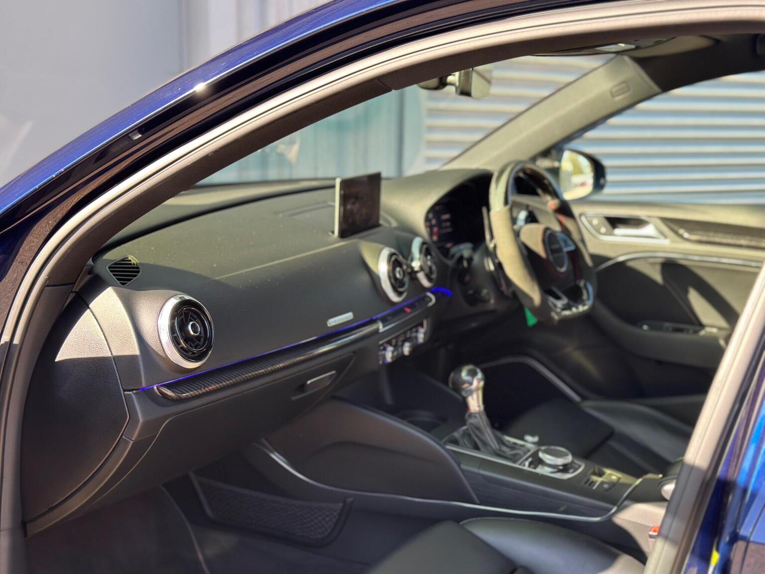 A lovely example of these stunning S3’s. This particular example is finished in Cavansit Blue, which is complemented by the wheels in black cut making the overall appearance of the car look first class. We bought the S3 directly from its previous owner, who was selling it after 4 years of ownership to fund their next vehicle purchase. The car benefits from a number of tasteful enhancements: 19” MAM wheels with Michelin tyres, Milltek exhaust, Ram Air intake, Racingline front brake kit, full splitter kit, carbon fibre wing mirrors, black wrapped roof, carbon fibre/alacantara steering wheel, carbon fibre interior trim inserts.