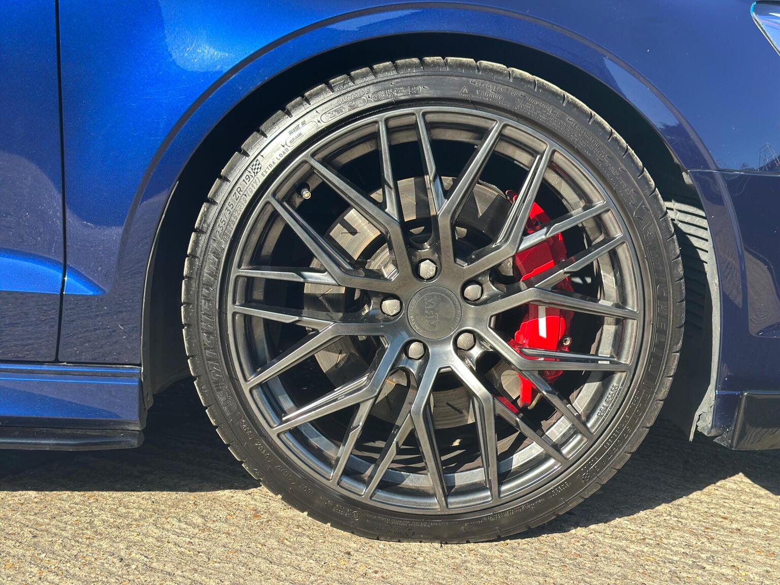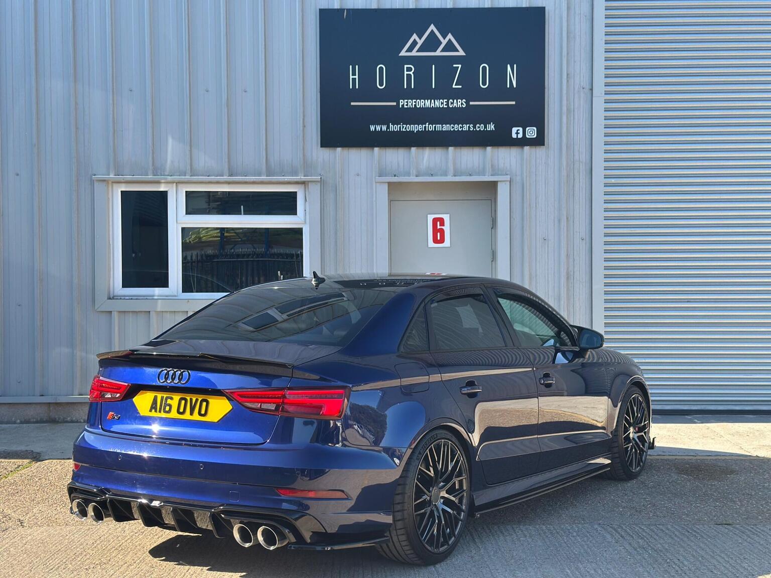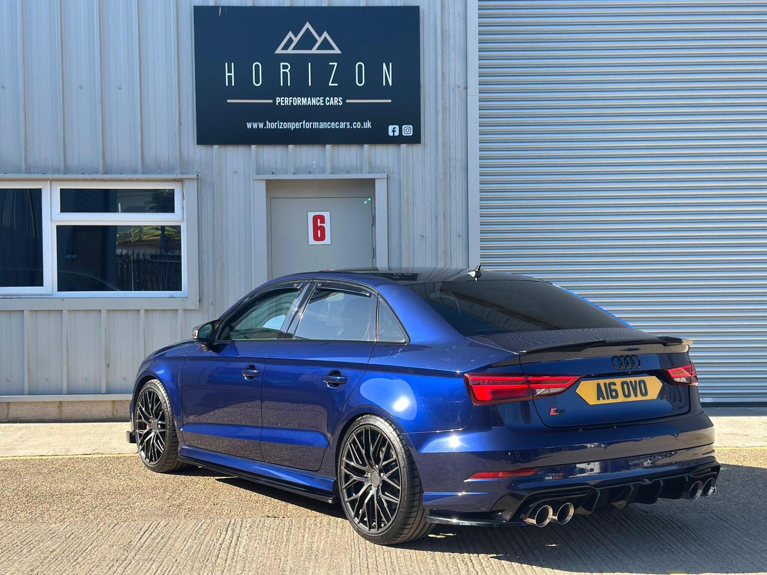 A lovely example of these stunning S3’s. This particular example is finished in Cavansit Blue, which is complemented by the wheels in black cut making the overall appearance of the car look first class. We bought the S3 directly from its previous owner, who was selling it after 4 years of ownership to fund their next vehicle purchase. The car benefits from a number of tasteful enhancements: 19” MAM wheels with Michelin tyres, Milltek exhaust, Ram Air intake, Racingline front brake kit, full splitter kit, carbon fibre wing mirrors, black wrapped roof, carbon fibre/alacantara steering wheel, carbon fibre interior trim inserts.