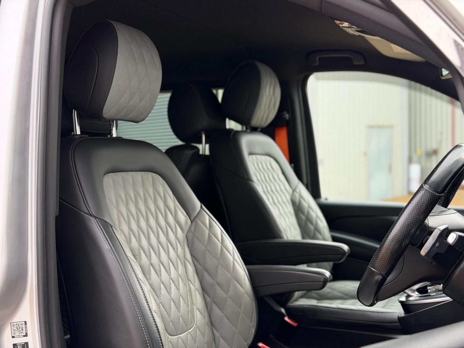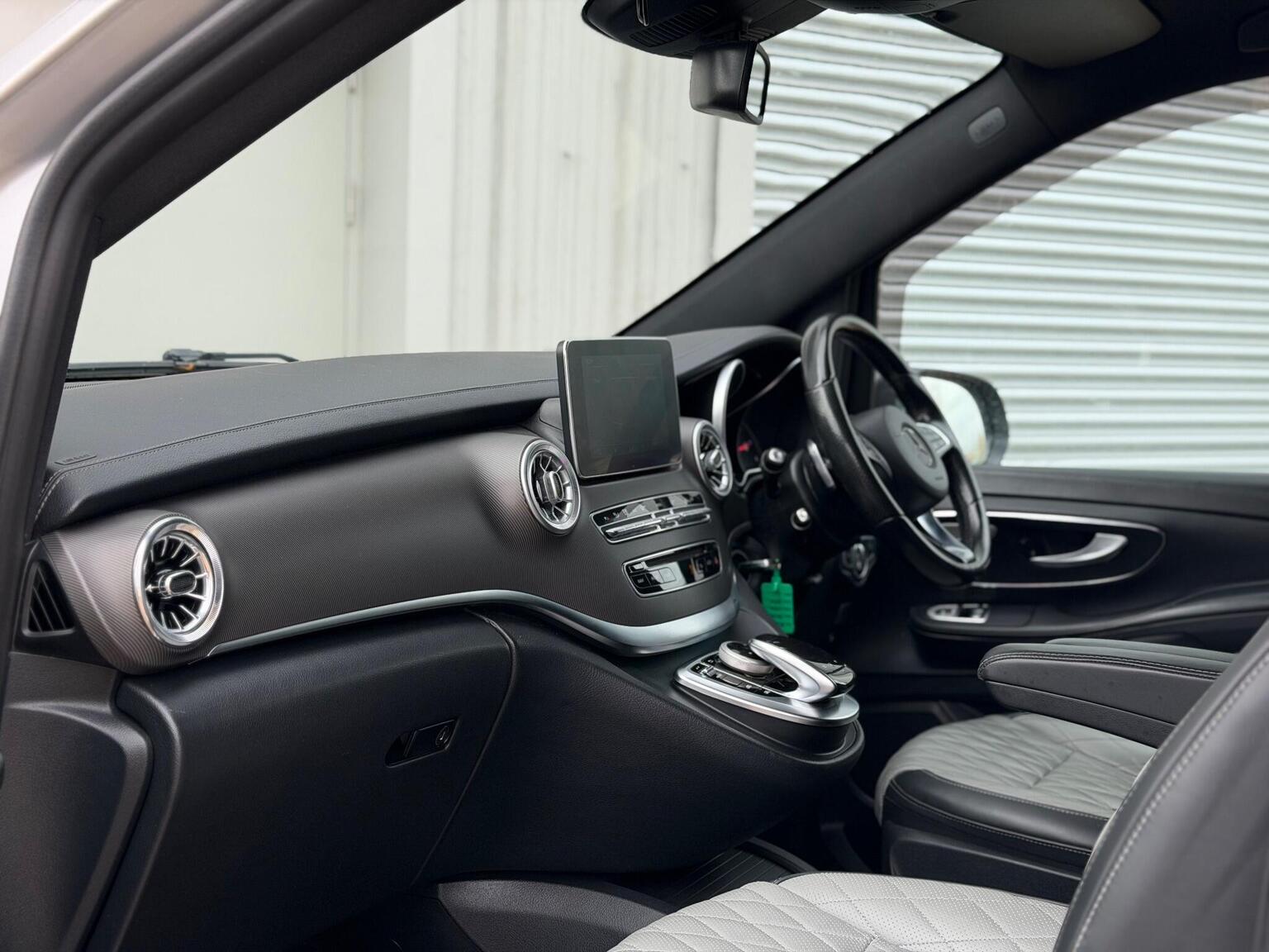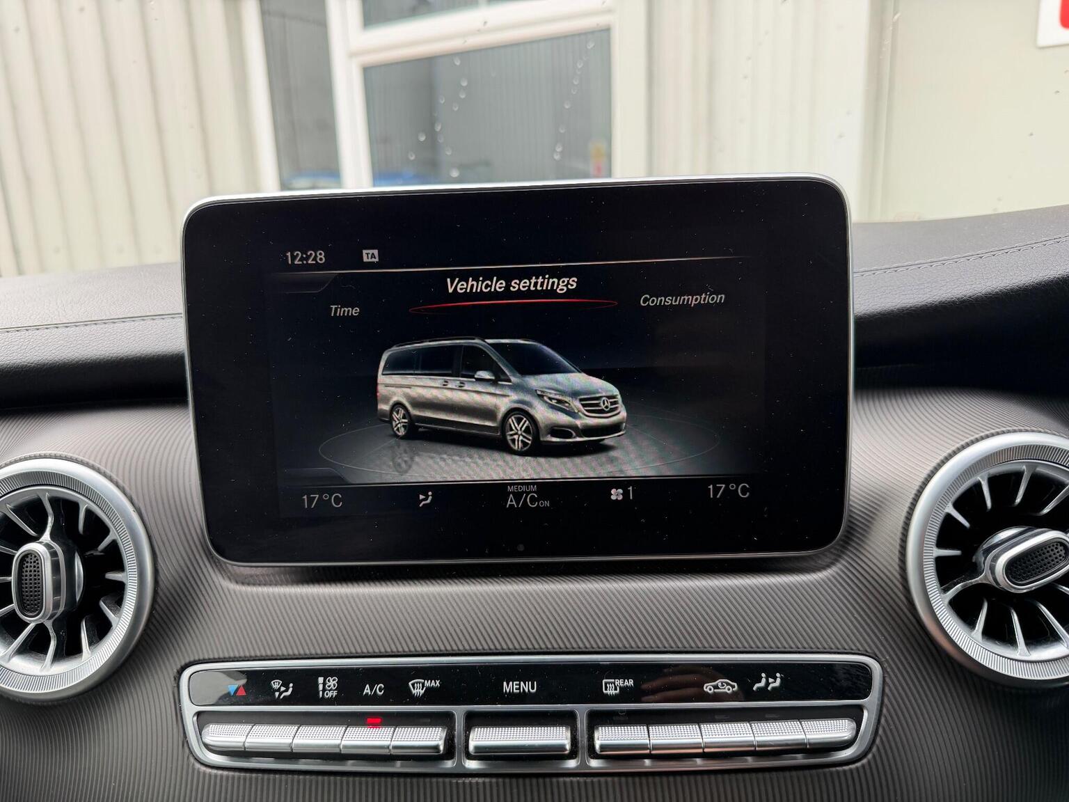 Features wise this V Class has a stunning specification, it has; front heated/quilted leather seats, 7 seats, table in the rear, reversing camera, power boot, powerfold mirrors, DAB radio, navigation, cruise control, climate control, parking sensors, paddle shifts, radio, Bluetooth, auto lights, electric windows, electric mirrors, and much more.